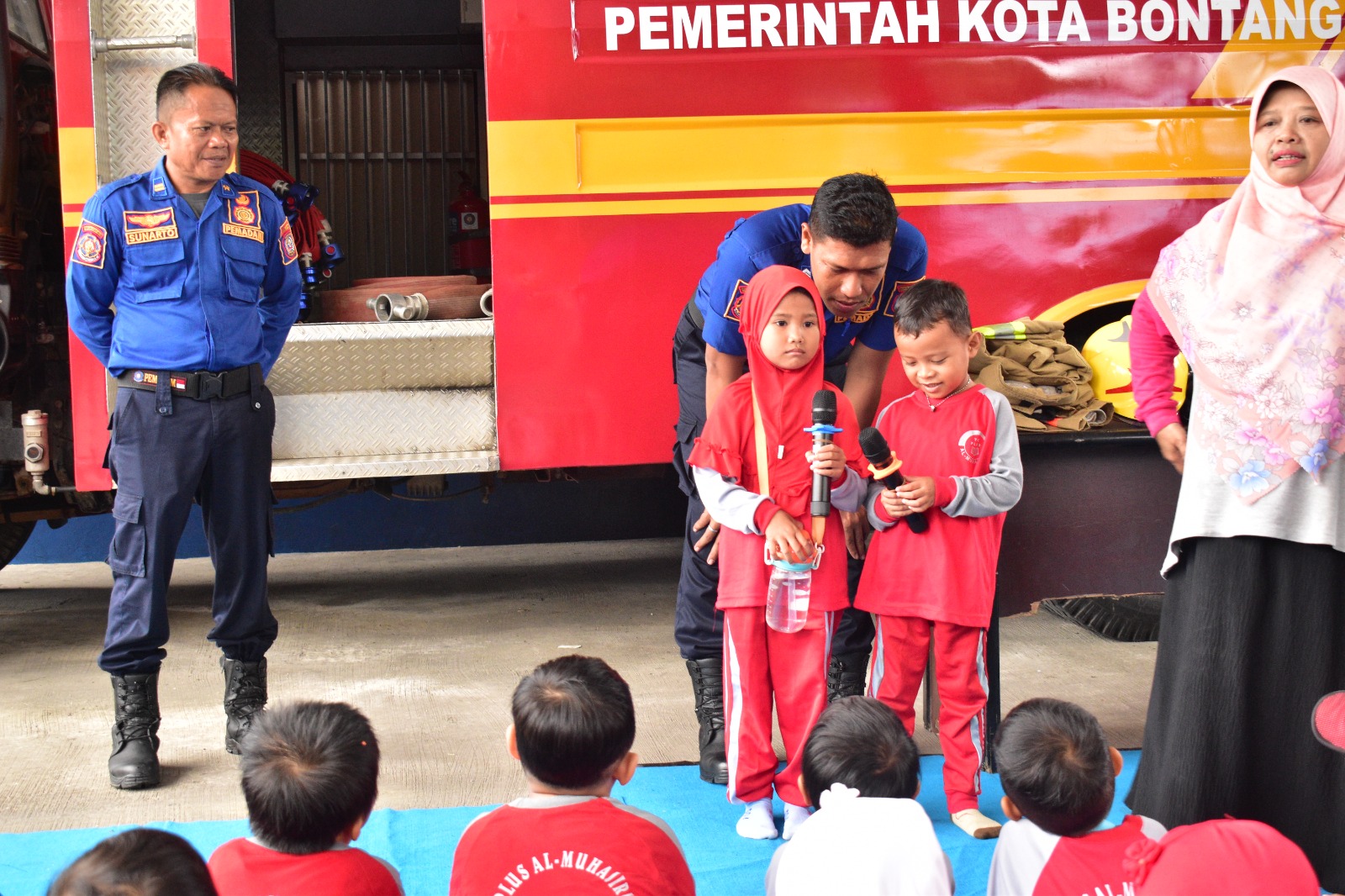 Hal ini disampaikan langsung oleh Kepala Disdamkartan Bontang, Amiluddin, yang dimana petugas mengenalkan berbagai macam alat perlengkapan pemadam, serta memberikan pengetahuan dasar mengenai arti bahayanya kebakaran, dan keselamatan sejak dini.