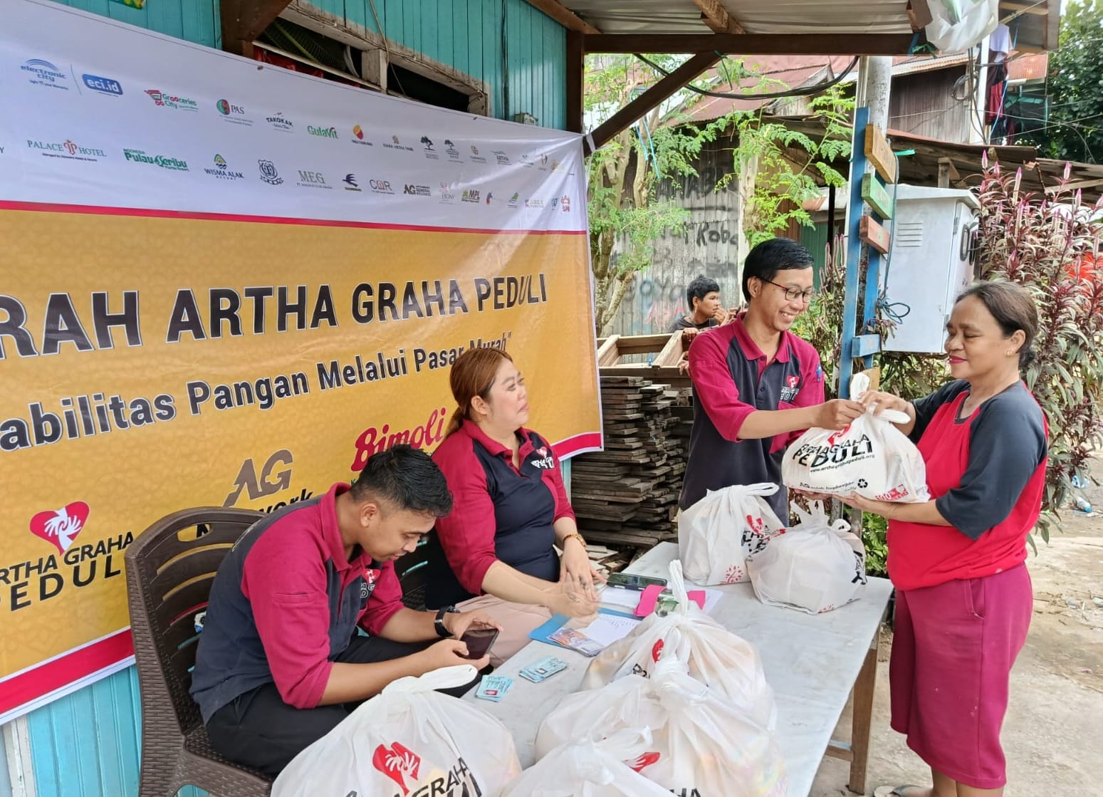 Bank Artha Graha Internasional (BAGI) bersama relawan AGP turut berperan aktif memastikan ketersediaan pasokan dan kelancaran distribusi di lapangan. Pendekatan distribusi langsung, termasuk melalui metode door to door di sejumlah wilayah, dilakukan untuk menjangkau masyarakat secara lebih luas, merata, dan tepat sasaran.