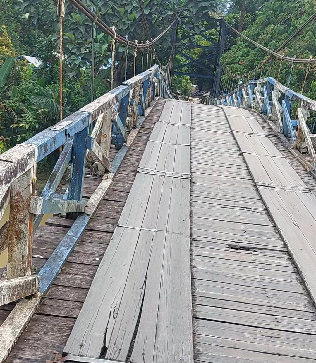 Kaltimtoday.co, Paser — Jembatan Gantung di Desa Uko, Kecamatan Muara Komam, Kabupaten Paser perlu mendapat perhatian khusus. Pasalnya, jembatan yang beralaskan kayu ini ditemukan beberapa lubang dan bergoyang.