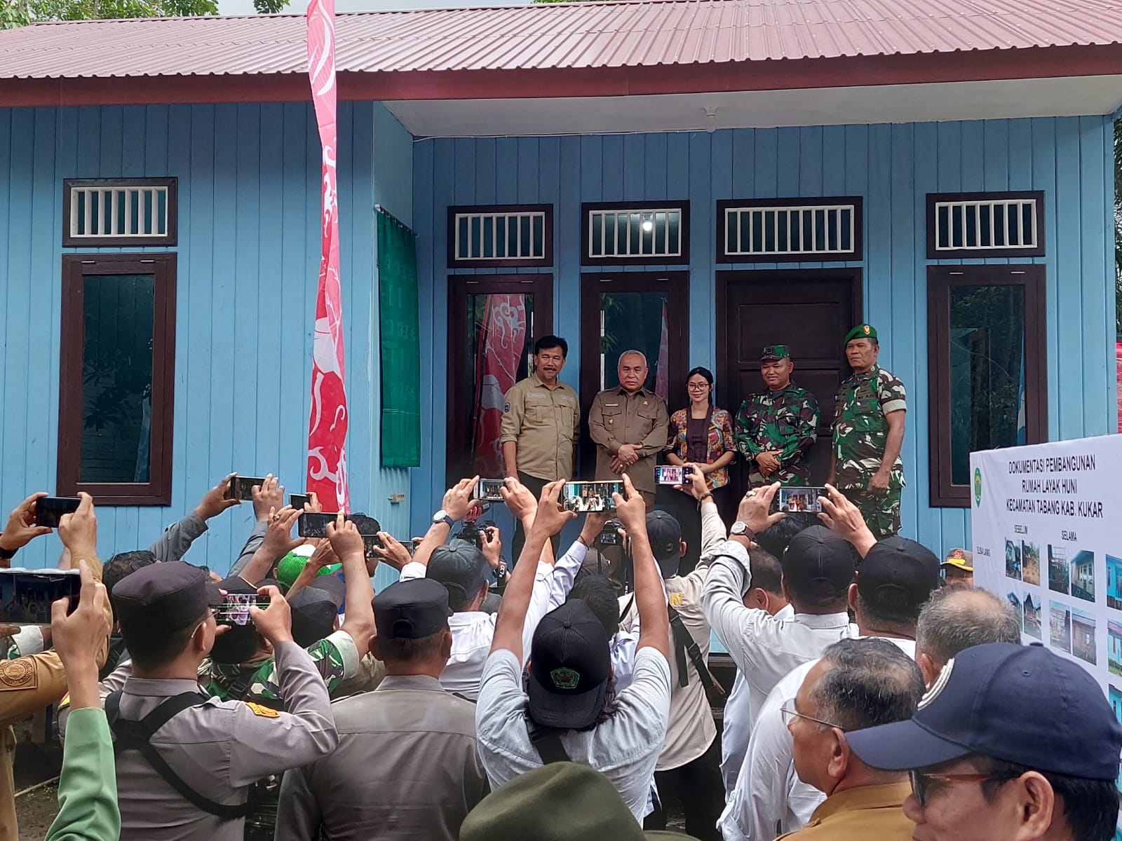 Isran secara simbolis menyerahkan tiga RLH kepada Susi (anak dari Darius Siyen), Lamri, dan Salang. Ketiganya tampak ceria bisa mendapat bantuan RLH. “Kami bersyukur atas perhatian pemerintah dan pemilik perusahaan terutama Bayan Group,” kata Susi mewakili yang lain.