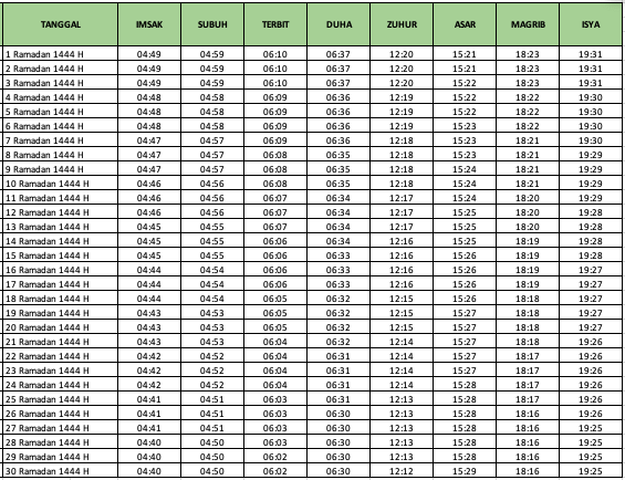 Bagi Anda yang tinggal di Bontang, jadwal imsak 1-30 Ramadan 1444 H/2023 Masehi adalah sebagai berikut: