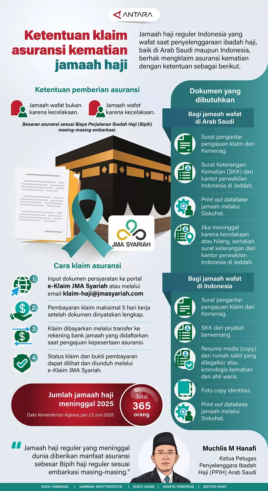 Untuk jamaah yang wafat di Arab Saudi, ahli waris perlu menyiapkan dokumen berikut: