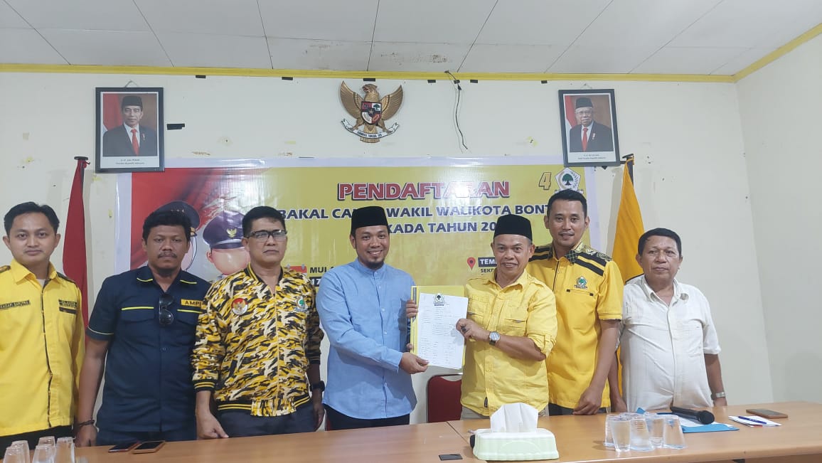 Kaltimtoday.co, Bontang - Ketua Dewan Pimpinan Daerah (DPD) Gelora Bontang, Muhammad Aswar, mengembalikan formulir bakal calon wakil wali kota di DPD II Golkar, Senin (22/4/2204) sore.