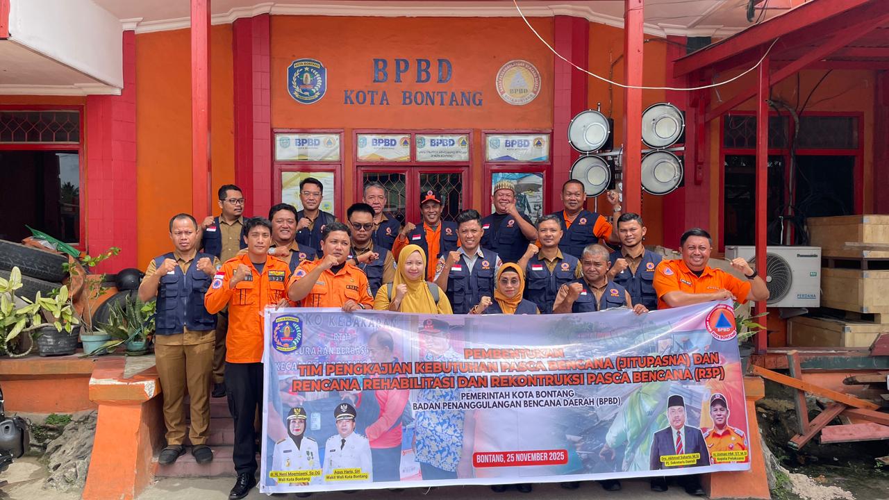 Kaltimtoday.co, Bontang - Upaya mempercepat proses pemulihan pascabencana di Kota Bontang semakin diperkuat melalui pembentukan Tim Jitupasna atau Tim Pengkajian Kebutuhan Pascabencana. Pembentukan tim tersebut dilaksanakan di Kantor BPBD Bontang pada Selasa (25/11/2025) dan melibatkan berbagai instansi teknis yang memiliki peran dalam proses pemulihan bencana. Tim ini dibentuk untuk memastikan pengkajian kerusakan, kerugian, serta kebutuhan pascabencana dapat dilakukan dengan lebih sistematis dan akurat.