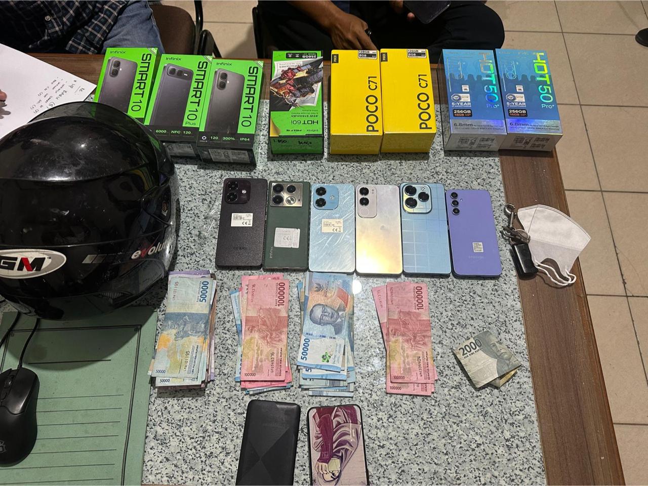 Polisi juga mengamankan sejumlah barang bukti berupa belasam unit ponsel berbagai merek, uang tunai Rp4,4 juta, sebuah motor NMAX putih, serta rekaman CCTV berdurasi 4 menit 20 detik yang memperlihatkan aksi penipuan tersebut.