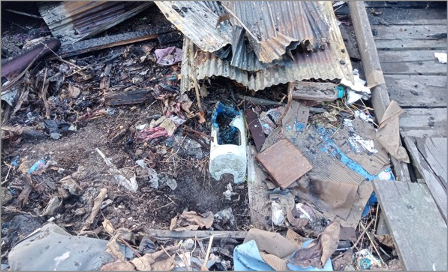 Dari hasil pengamatan ku, terlihat semua rumah yg terbakar hampir berjenis rumah kayu. Terlihat begitu banyak kayu-kayu rumah yang sudah jadi arang. Si jago merah sungguh beringas. Satu mobil tua yang berada di kawasan tersebut hangus menyisakan kerangka mobil. Tiang lampu hangus terbakar. Penutup meteran PDAM hangus terbakar. Spring bed ukuran king hangus terbakar, menyisakan per-per Kasur yang hampir memerah karena terbakar api panas.